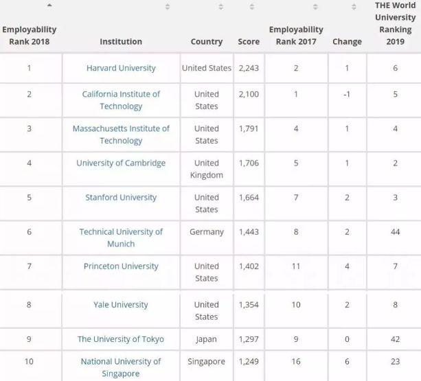 根据法国人力资源咨询公司Emerging和就业研究中心Trendence的数据,通过对22个国家2500名招聘经理进行在线调查(参与调查的公司通常都拥有5000多名员工,每年会招聘50多名年轻毕业生),得出了2018年度的泰晤士全球大学就业力排行榜。