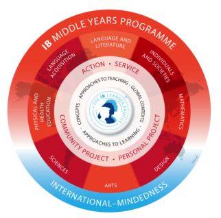 中学项目包括八个学科群:语言习得、语言与文学、个体和社会学、科学、数学、艺术、体育与健康教育以及设计。