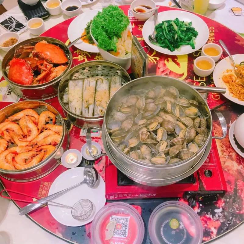 最令人兴奋的七层海鲜塔,每一层都装着不同的新鲜海鲜:竹蚌、鲜虾、螃蟹、青口、扇贝和墨鱼等,都在笼屉里等着我们。
