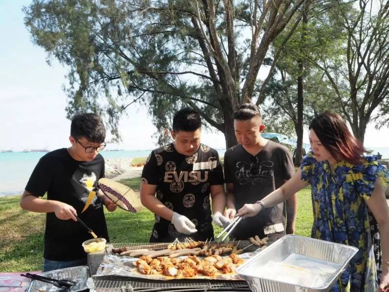 肉在火上滋滋烤,香味在海风里蔓延,把大家吸引了过来。口感鲜嫩,多汁微辣,孜然喷香,大家坐下来大快朵颐,边吃边聊各自在新加坡的学习和生活,距离瞬间拉近。