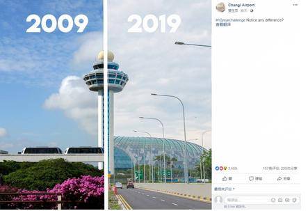 樟宜机场的10年挑战 社交媒体火爆的话题“#10YearChallenge”,樟宜机场也贴出控制塔的照片,而当中最明显的不同就是今年控制塔后方,可以看到已经差不多要完工的“星耀樟宜”。(截图自Changi Airport Facebook)