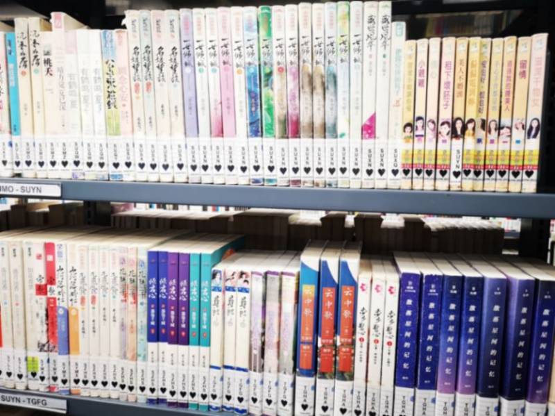 一排排国内作者的网络小说,果然网络小说在海外很受欢迎,看到不少人去取阅