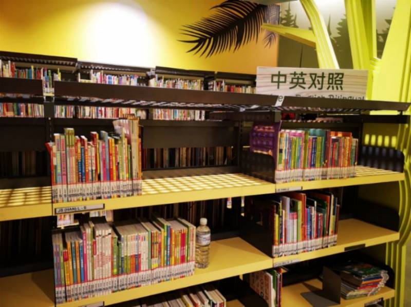 这是0-3岁低幼区,有各种英文绘本、中文绘本,还有很多育儿书