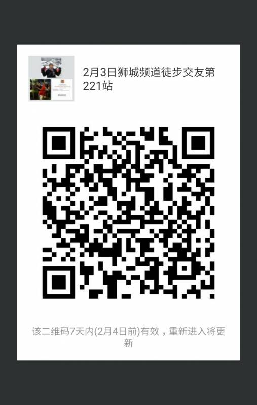 请扫描狮城频道徒步交友第221站的二维码参加,徒步后聚餐交友,欢迎小伙伴们一起来认识更多朋友吧!!!