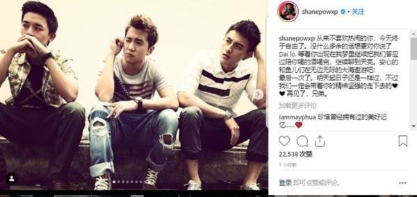 冯伟衷生前的“三剑客”包勋评与方伟杰在IG贴图写文,其中包勋评贴出了三人的旧照,并写道:“等着你出现在我梦里…… 明天起日子还是一样过,不过我们一定会带着你的精神坚强的走下去的。”