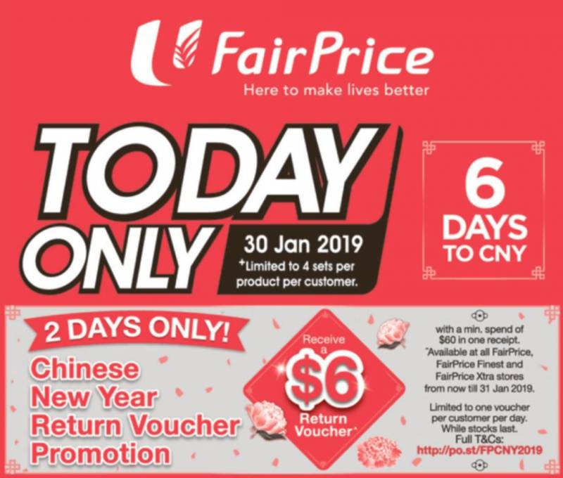 2.FairPrice新春特惠 任意消费满60新币返6新币Voucher