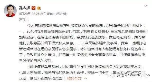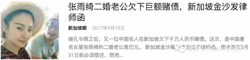 其实被新加坡赌场追过债的名人可不少,2017年,中国的桌球王子孔令辉欠新加坡金沙赌场250万,被追债上法庭!不过很快,孔令辉还钱了,但表示自己没有欠债,只是替亲友去取筹码。