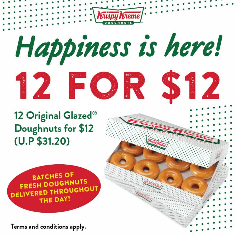 4.美国老牌甜甜圈Krispy Kreme特价,一个只要一新币喔!【仅限1月31日】