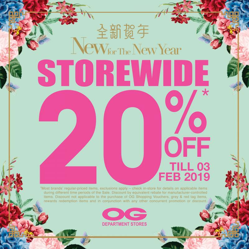 Discount not applicable to the purchase of OG Shopping Vouchers, grey & red tag items, rewards redemption items and in conjunction with any other concurrent promotion or discount.
