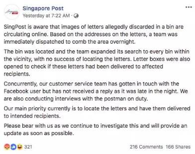 受影响居民若需协助,或要通报类似事件,可拨新邮政热线6845 6222举报。