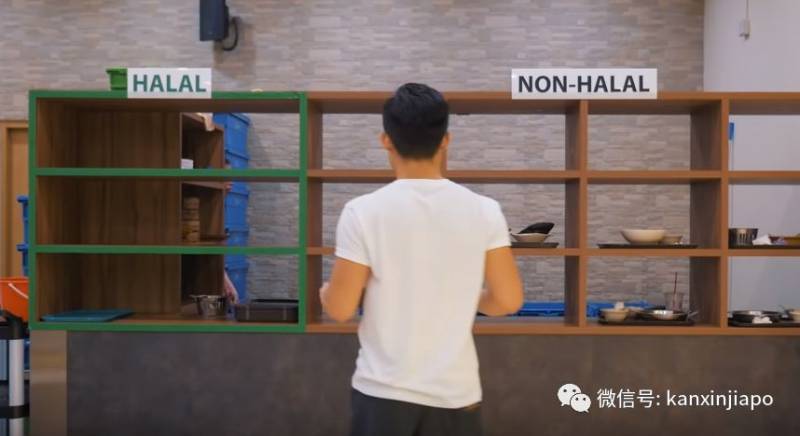 (归还碗碟时,也分了清真和非清真。截图来自:YouTube Jensen Tung的频道)