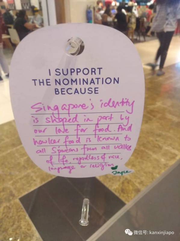 对于小贩中心申请“非物质文化遗产代表名录”,新加坡可谓全民支持,在诺维娜小贩中心的申遗板上,大家纷纷书写了自己对它的热爱。至今已有超过85万人支持申遗!