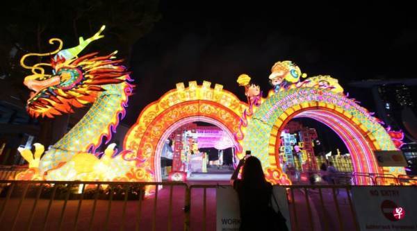 春到河畔2019入口处设有一道龙形大拱门,龙身蜿蜒缠绕,形似数字“200”,以纪念新加坡开埠200年。(图取自联合早报)