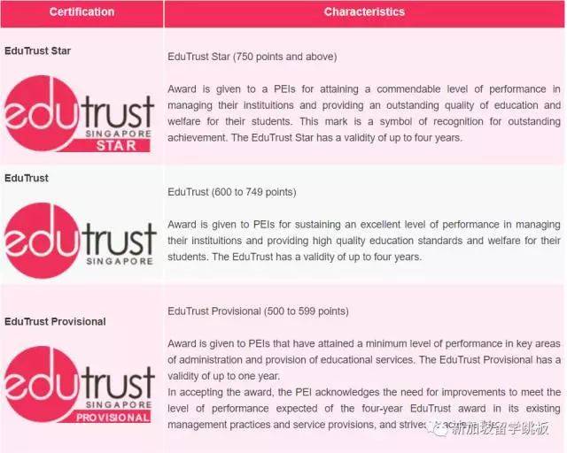 新加坡教育理事会为了加强对新加坡私立大学的管理和监督,于2010年推出新加坡教育信托保障计划认证(Edutrust认证),选择新加坡学校的时候要看院校是否有这个认证,有这个认证的学校才有合法权利招收国际学生,而且留学生的利益可以得到全面的保障。