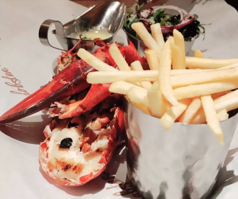 玩乐君最爱的还是烤龙虾,搭配了炸薯条和沙拉。