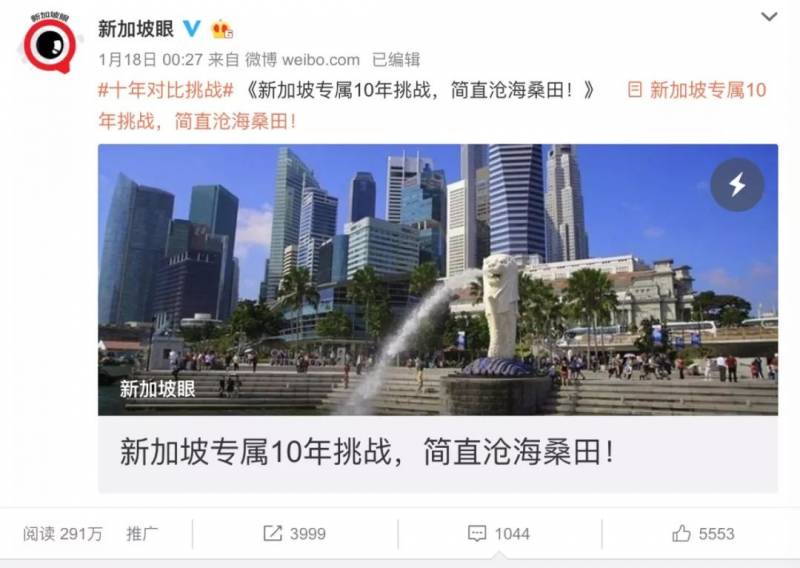 前不久,我们发表的《新加坡的十年挑战》,在中国第一大报《人民日报》官微主持的超级话题里排名第一,话题总阅读浏览量有46.8亿次,吸引了307.1万人次参与。