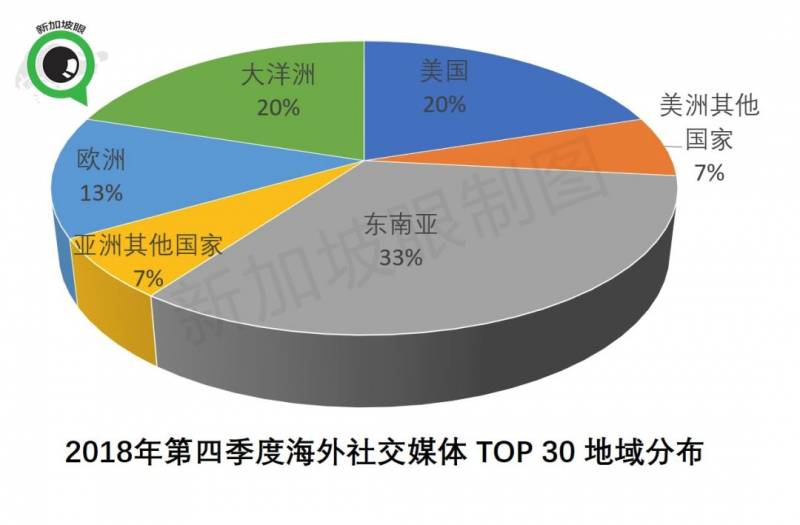 东南亚之所以份额大,主要是两个原因,一个是华人人口比例较高,另一个是地理上靠近中国,与中国的商贸、文化等交流较为频密,这也反映到社交媒体的影响力上。