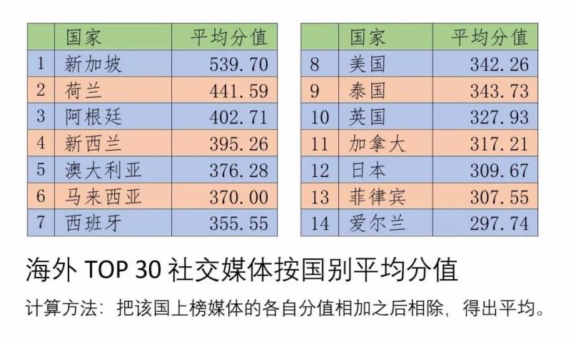 如果进一步分析TOP 30各国社交媒体的平均影响力,那么新加坡更是遥遥领先。