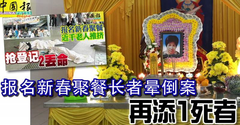 (吉隆坡30日讯)日前为报名参加新春慈善乐龄聚餐,导致6位长者晕倒,2位老妇不治一事,昨日再有1名老妇不幸去世,死亡人数增至3位!