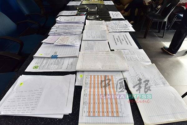 警方在取缔行动中,起获5本诈骗台词本、受骗者借贷名簿、每天诈骗数额交易记录、各种内陆税收局假文件、假支票、51张手机号芯片、2台打印机等、30台手机及2台手提电脑等。