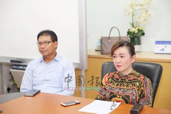 蔡礼嫔(右)宣布森美兰爱心洗肾中心,仅能再为肾病患者提供两星期的洗肾服务,左为黄德华。