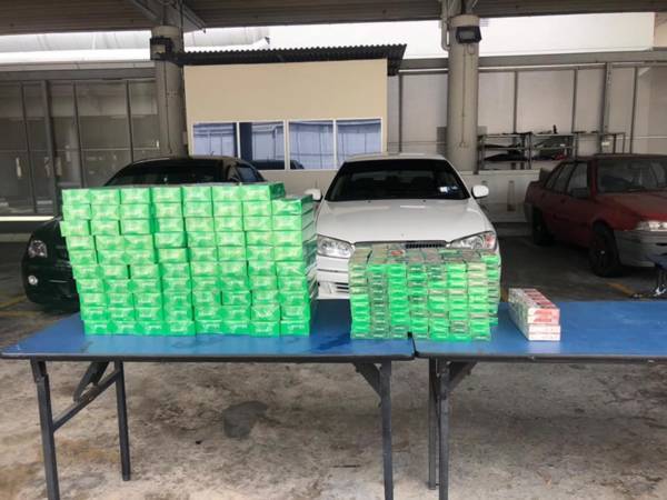 移民与关卡局面子书帖文指出,新加坡移民与关卡局(ICA)于本月29日在关卡临检时,发现一辆大马注册车牌的轿车内藏有81条即300包的漏税香烟。