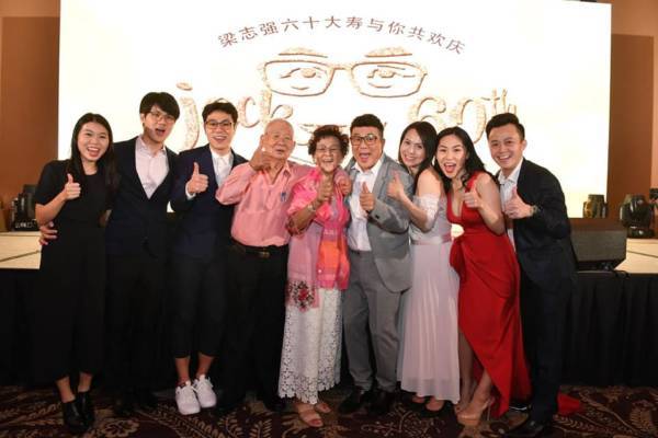 新加坡千万导演梁志强昨天步入60岁,妻子和孩子为他在瑞吉酒店(St Regis)大摆寿宴,邀请近300名亲友及圈内人士一起为他庆生。