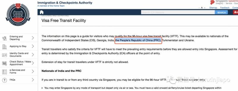 新加坡96小时免签证转机服务(Visa Free Transit Facilities, 即VFTF)