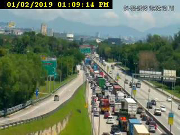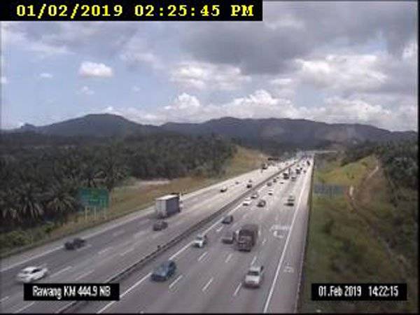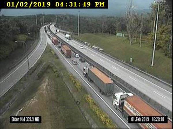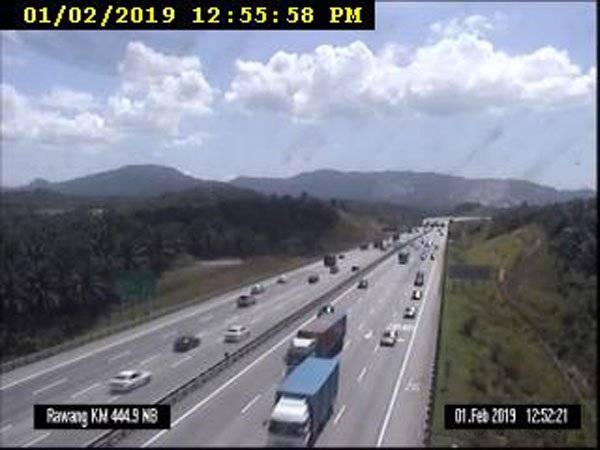 南北大道(PLUS)北部从打巴朝务边、瓜拉江沙到章卡遮令,以及美罗拉隧道朝双溪霹雳,皆交通缓慢。