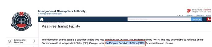 现在,浏览新加坡移民局(ICA)的官网,可以颁发过境签的国家list里,已经添加上了中国!