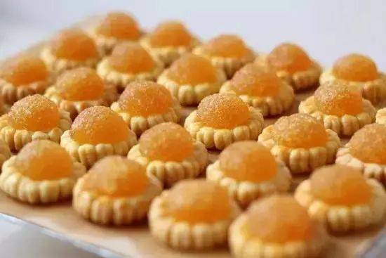 在新加坡和马来西亚一代,新年食物中必不可少之一是黄梨挞。这是一种是早期峇峇娘惹的传统糕饼,和台湾的凤梨酥不同,馅料外露,小巧可人。