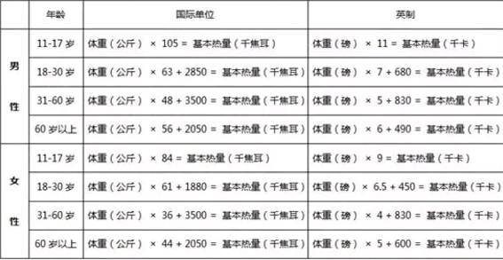 其实,每个人每日所需热量和体重、年龄有关。若要较准确计算自己的基本热量,可以采用以下的公式: