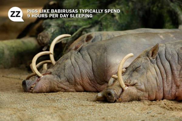 是猪还是犀牛?乍看之下,来自印度尼西亚的鹿猪(Babirusa)其实长得有点像犀牛,一样有土灰色的肌肤,据说是全世界最奇特的动物之一。