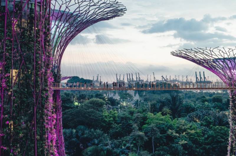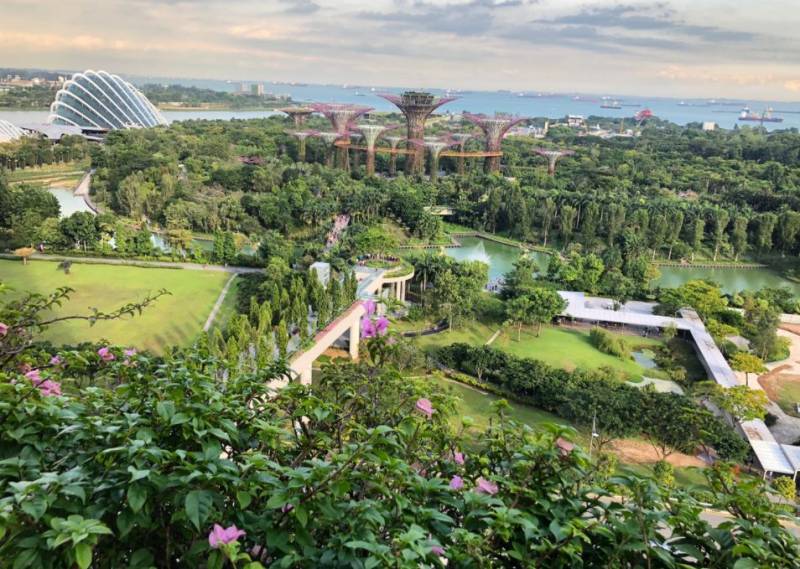 还未走进滨海湾花园,从远处便能看到著名的擎天树(Supertrees)了,它们是高度介于25米至50米(相当于9层楼至16层楼高)的树形结构,高高耸立在滨海湾花园中,是一处有生命的摩天楼群。