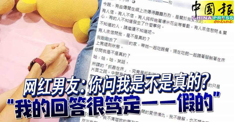 这名同样也是网红的男友,更在文中强调自己了解女友的为人,同时披露自己是和女友用餐后,两人“吃饱一起跷着脚躺着在床上”写了有关的回应贴文,还贴出两人十指紧扣的照片佐证说词。