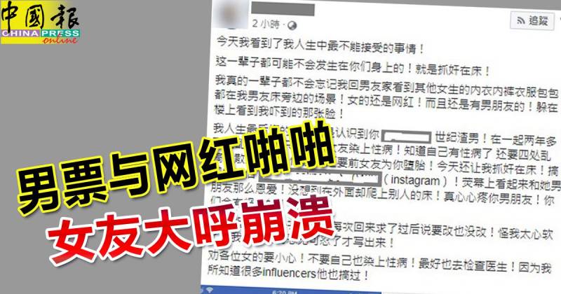 (吉隆坡3日讯)“与女网红啪啪啪遭女友捉奸”的男主自称“世纪渣男”,还承认自己多次出轨,并指外遇是他的本性,这点他的朋友、家人和女友都知道,自觉没有什么大不了。