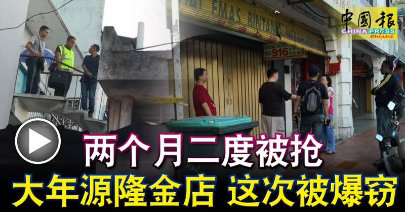 该店分别于去年12月15日,及今年1月20日被抢,第一次被抢时损失约20万令吉,第二次劫匪敲不破玻璃橱柜,空手而逃。