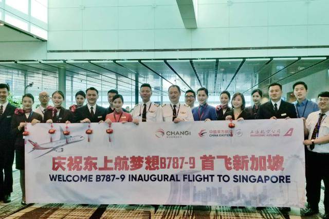 “欢迎您搭乘上航787新加坡首航航班!今天是上航波音787执飞新加坡的首航航班。”