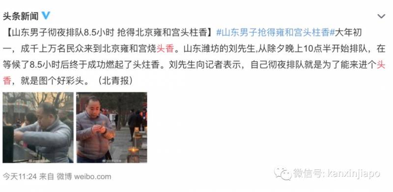 不过别以为只有新加坡人那么疯狂,中国人也一样,这位山东大哥跑到北京,排队8.5小时,就为了烧头香: