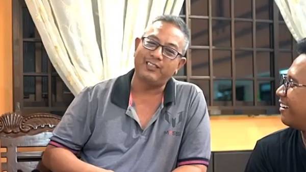 Kamaruzzaman bin Abdul Latiff(中)接受新传媒电台主持人访问。