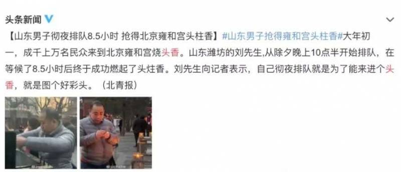 这不单单是新加坡,中国也是有的,让我们一起来看看这位来自山东的朋友,整整排队8个小时抢到北京雍和宫头柱香!!
