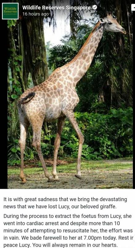 在2月5日,又有一只可爱的动物离开了我们!他就是新加坡动物园14岁的长颈鹿露西!!