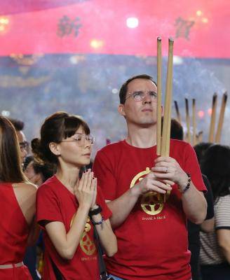 (新加坡讯)万人挤爆四马路观音堂争插头炷香,连外国人也来凑热闹,包括16名组团前来的日本人、洋人和客工等,与香客一起排队,插头香讨好兆头。