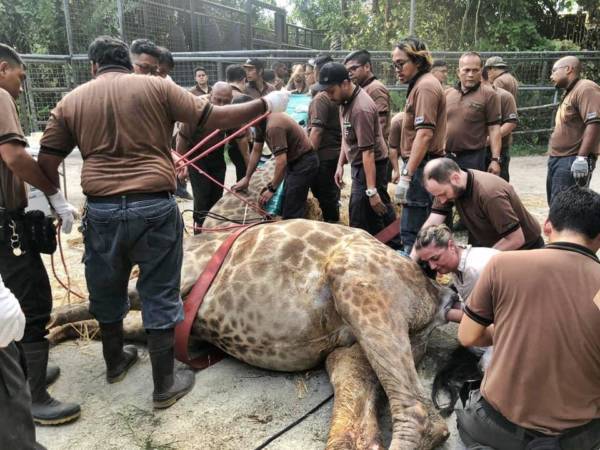(新加坡讯)动物园14岁的长颈鹿露西(Lucy)难产48小时,兽医尝试取出胎儿,但露西在手术过程中心脏骤停,抢救无效,母子最终都无法挺过难关。