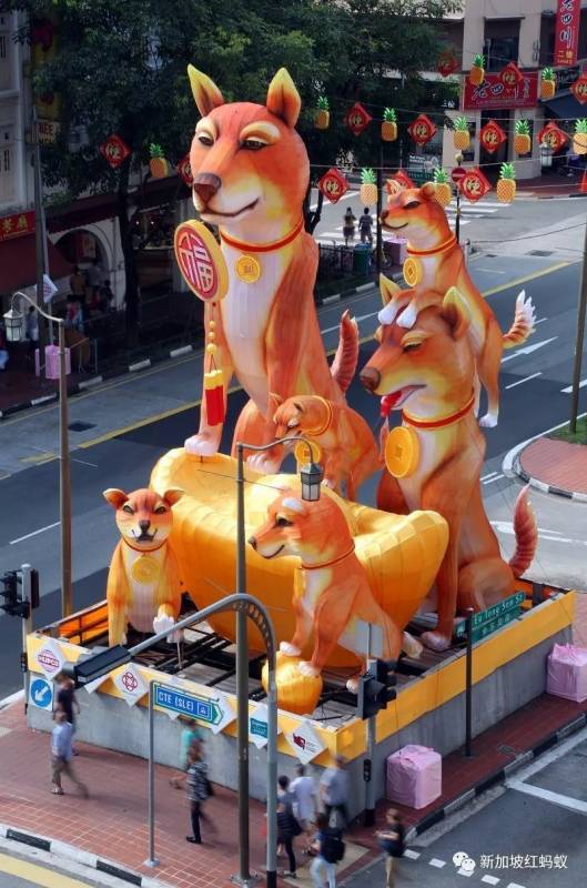 说这些“狗狗”和其他装饰与牛车水的旧装饰撞脸,可不是瞎说的。先来看看以下这组牛车水去年农历新年和中秋节的装饰。
