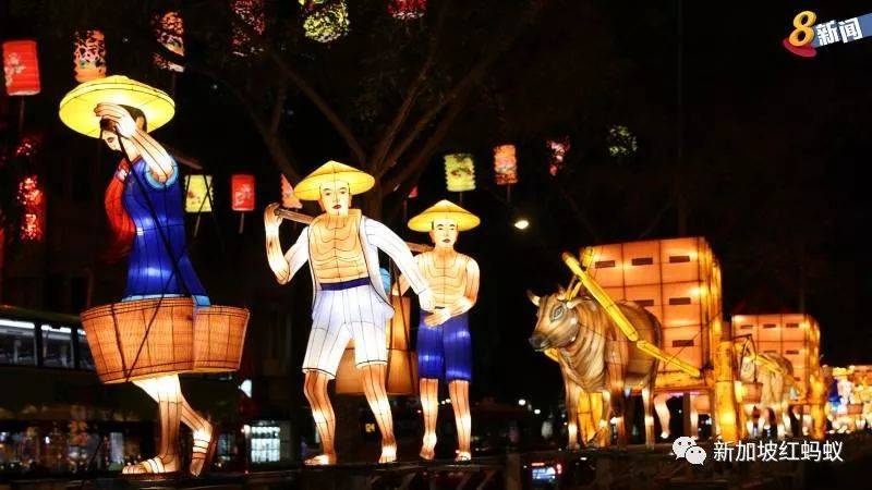 牛车水2018年的中秋节装饰。这些人物身上的服饰和后港的装饰相似度极高。(8频道新闻)