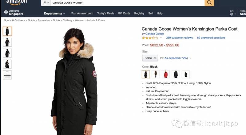但是,网友在亚马逊下单后,发现自己的加拿大鹅竟然来自新加坡!并且还要途径香港送到美国!说好的“55年正宗鹅“呢?
