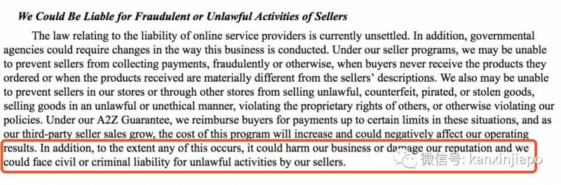 一周前,亚马逊公布的2018年财报中,第一次明文写道“公司可能会为商家的欺诈等违法行为负责”