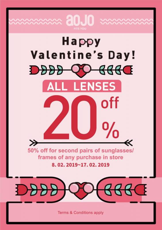 2.aojo情人节优惠 镜片8折 镜架第二副半价