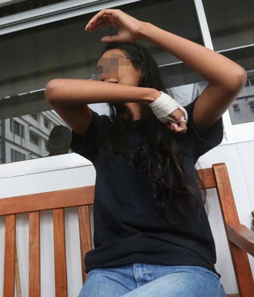 受害女郎右手被割伤。(档案照)